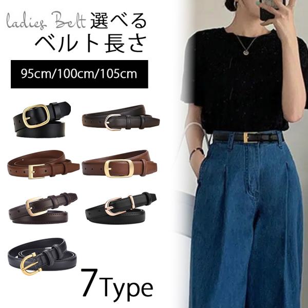ベルト レディース 革 レザー おしゃれ 95cm 100cm 105cm 選べる 7Type 細い 太 細 細身 レザー 黒 大きいサイズ 小さいサイズ デニム ジーンズ かわいい 高校生