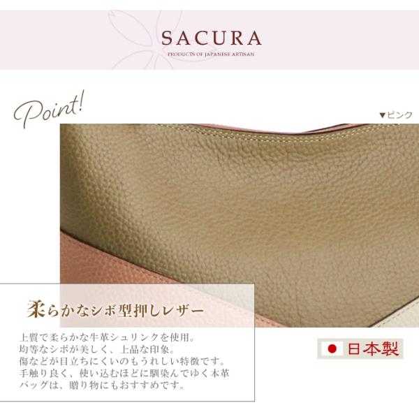 ショルダーバッグ レディース 本革 斜めがけバッグ 小さめ 日本製 通勤バッグ 切り替え 牛革 SACURA 女性 プレゼント ギフト