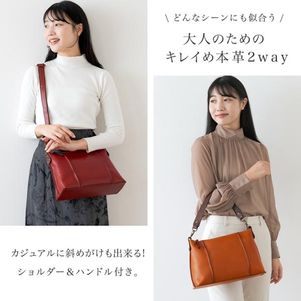 < SACURA サクラ シンプルハンドル 日本製 本革 2wayショルダーバッグ >