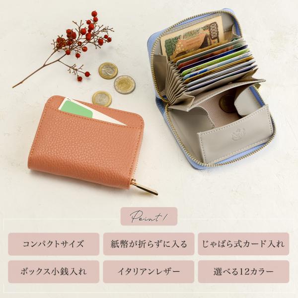 ミニ財布 レディース じゃばら 本革 カードケース お札が折れない 小さい財布 お札折らない ラウンドファスナー ボックス型小銭入れ 30代 40代 PRAGMA プラグマ