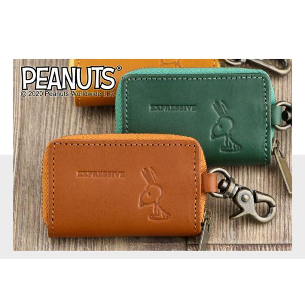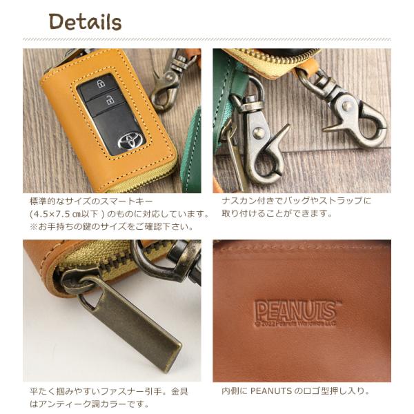 スヌーピー スマートキーケース 本革 窓付き 革 ラウンドファスナー snoopy スヌーピーグッズ シチヘンゲ SHICHIHENGE