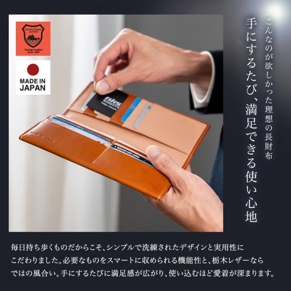 日本最高峰の植物タンニンなめし牛革「栃木レザー」の長財布です。
