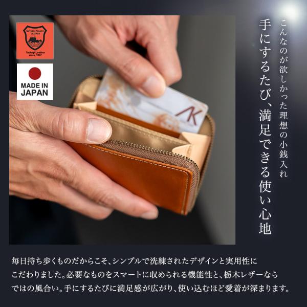 日本最高峰の植物タンニンなめし牛革「栃木レザー」の小銭入れです。