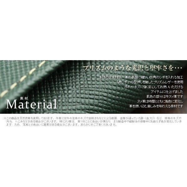 素材は丈夫でキズがつきにくい、角シボ型押し牛革を使用。附属部分にはヌメ革を使用しています。