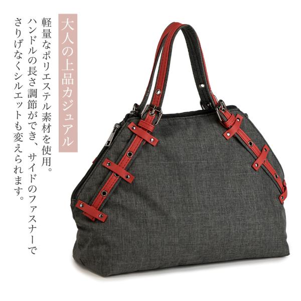 サイドのファスナーを開閉することで、その日の荷物量に合わせてシルエットをさりげなくチェンジできます。