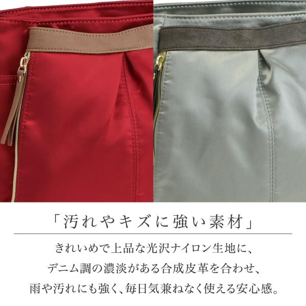 上品な光沢感のあるシャイニーナイロンと、味わいのある合成皮革をコンビで使用。