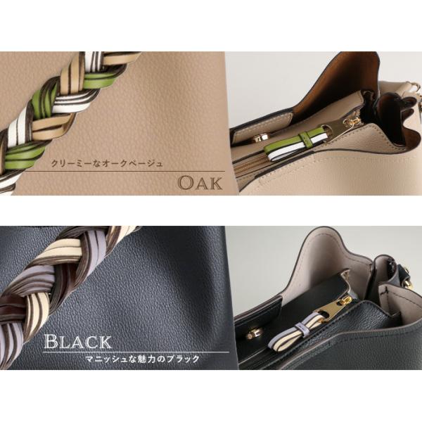 目を引く色合いの編み込みハンドルがポイント。