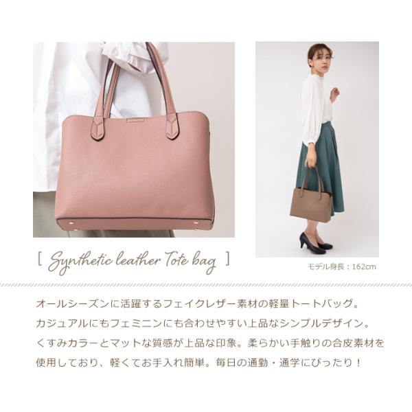 <軽量 シンプル B5サイズ きれいめ フェイクレザー トートバッグ>