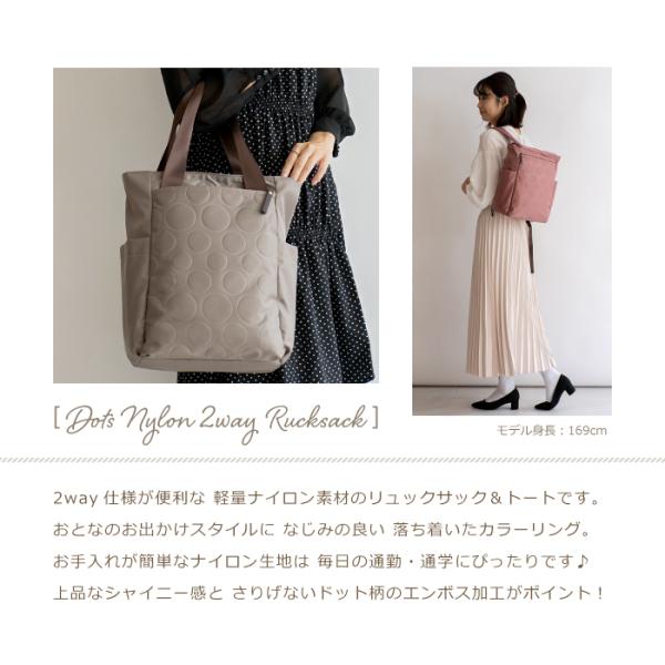 < 水玉エンボス ナイロン 2way トート&リュックサック >