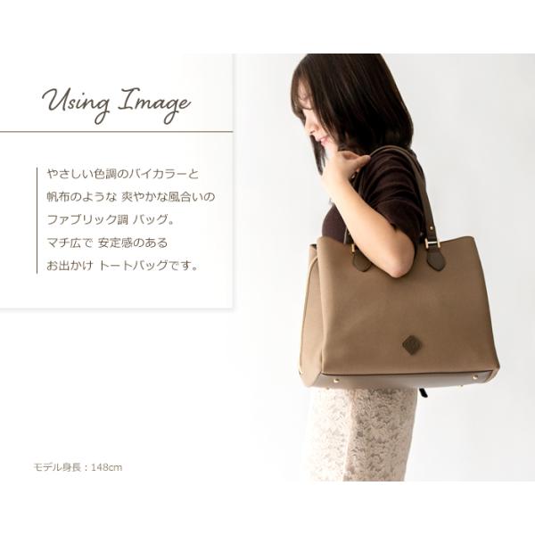 < コンビカラー 帆布調フェイクレザー トートバッグ >
