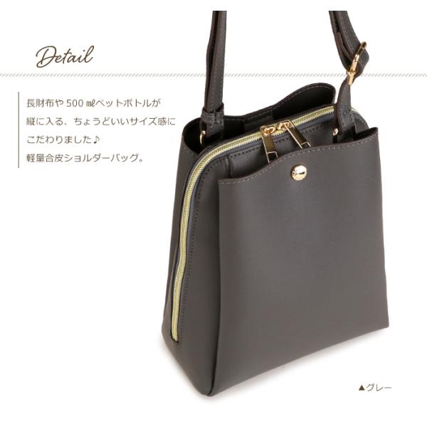<合成皮革 シンプル軽量 Wファスナー 台形ショルダーバッグ>