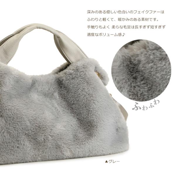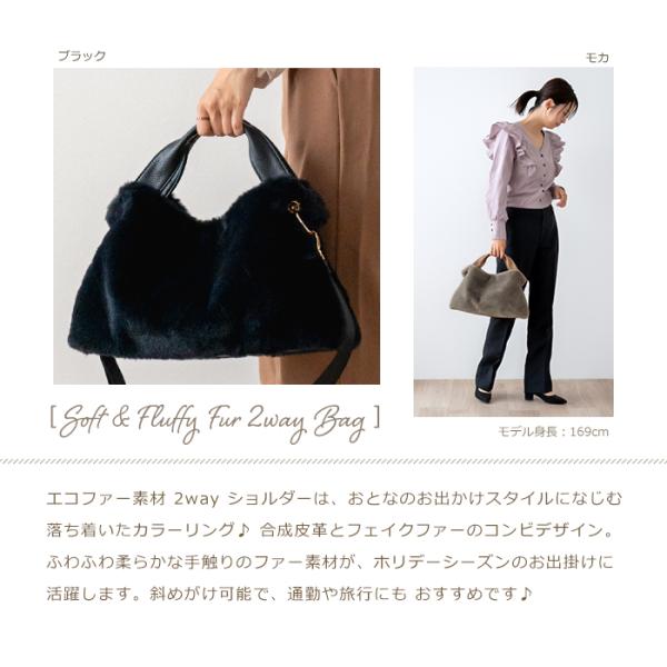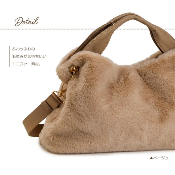 <フェイクファー エコファー ふわふわ ハンドルトート ショルダーバッグ>