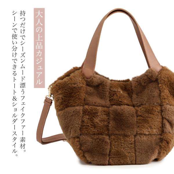 ファーバッグ ショルダーバッグ レディース 秋冬 軽い 斜めがけ モコモコバッグ エコファー トートバッグ 軽量 2way 通勤バッグ ファートート PRAGMA プラグマ