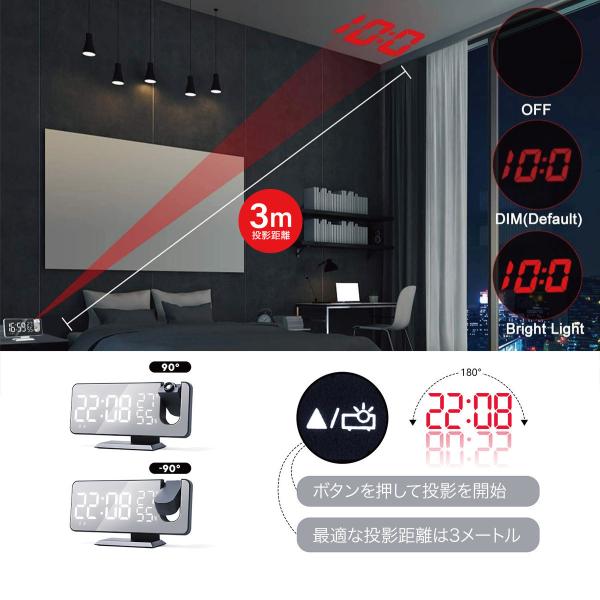 爆買 プロジェクター クロック 時計 天井 目覚まし時計 デジタルクロック 温度計 湿度計 pro-clock02