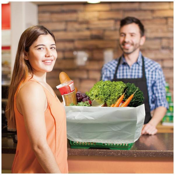 レジで精算時、カゴにセットするだけで商品を移し替える手間が省け、そのままお持ち帰りできます。