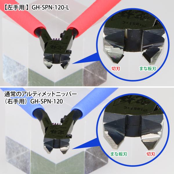 「切刃(きりば)」と「まな板刃」が、通常版アルティメットニッパー(右手用)とは逆に付いています。