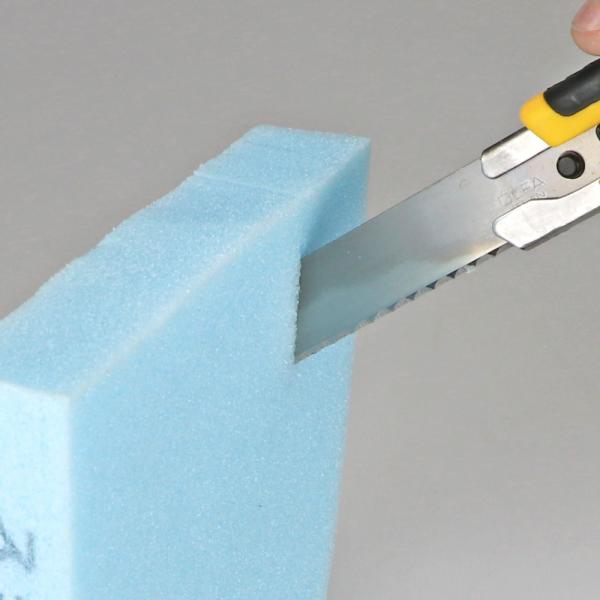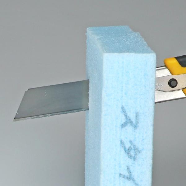 通常のカッター刃だと、スタイロフォームは表面で刃が滑るため切りにくいのですが、