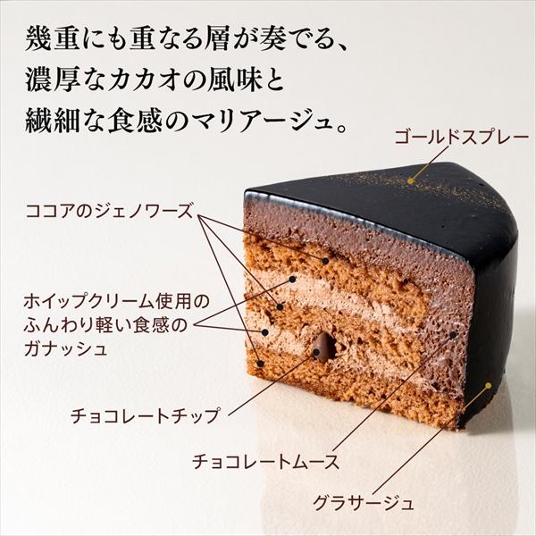 ゴールドスプレーがきらめく、ラグジュアリーなチョコレートケーキ。幾重にも重なる層が奏でるのは、濃厚なカカオの風味と繊細な食感のマリアージュ。チョコレートを贅沢に使ったムースで全体を包み込み、ふんわり軽やかなガナッシュとココアのジェノワーズが絶妙なハーモニーを生み出します。忍ばせたチョコレートチップが、ひと口ごとに楽しいアクセントを添えて。パティスリーの至福をそのままご自宅で。特別な日を華やかに彩る、ゴディバならではのプレミアムチョコレートケーキです。※冷凍配送になります。※ショッピングバッグは付与しておりません。あらかじめご了承ください。【お召し上がり方】冷蔵庫で解凍し(目安:5時間)、解凍後は冷蔵庫で保管しお早めにお召し上がりください。2026/ゴディバ/GODIVA/チョコレート/スイーツ/贈り物/お返し/ギフト/お菓子/出産内祝い/結婚祝い/引き出物/お祝い/詰め合わせ/Chocolate/冷凍ケーキ/冷凍スイーツ