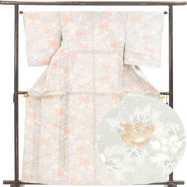 紬 身丈160cm 裄67cm レディース 単衣 絣模様 裄長 裄Lサイズ 初夏・初秋用 正絹(シルク)白色 やや難