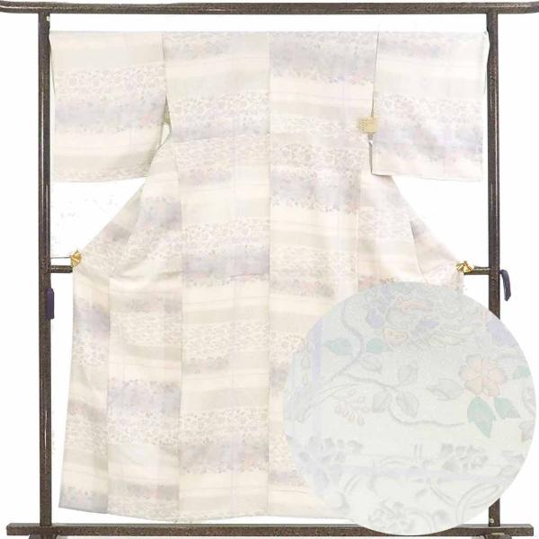 小紋 身丈159cm 裄69cm レディース 単衣 花柄 裄長 裄L-LLサイズ 初夏・初秋用 正絹(シルク)生成色 やや難