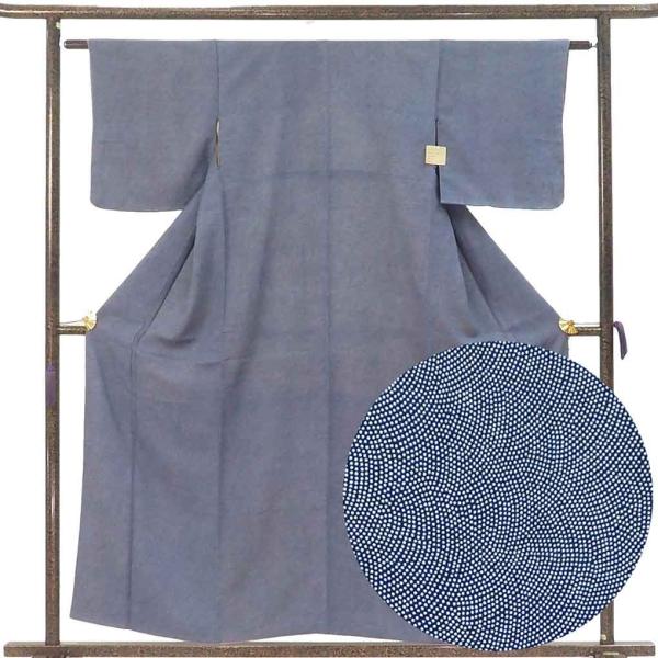 小紋 身丈156cm 裄60cm レディース 袷 鮫小紋 裄SS-Sサイズ 秋冬春用 正絹(シルク)青色 やや難