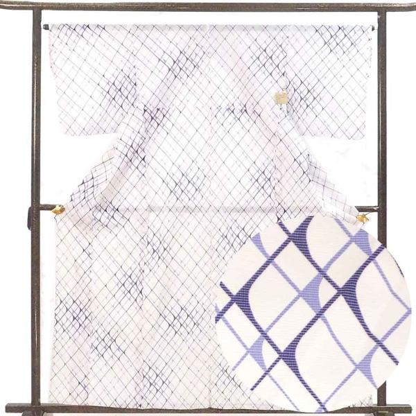 小紋 身丈160cm 裄65cm レディース 抽象柄 裄Mサイズ 夏用 ポリエステル 白色 美品