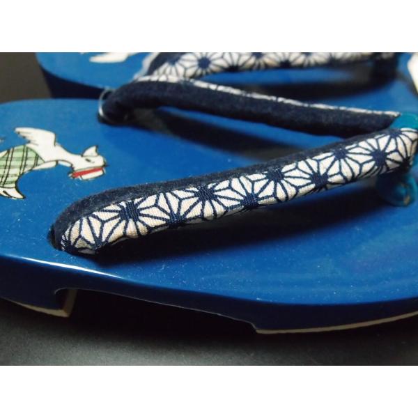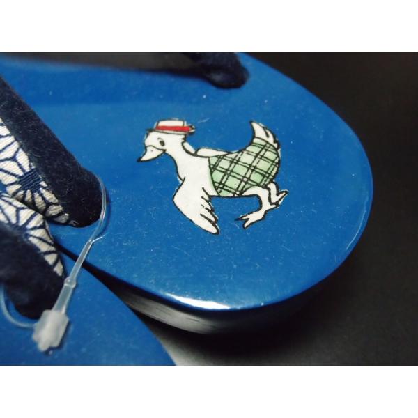 ブルーの塗り下駄アヒル柄・ 15cm(14〜15cm用)