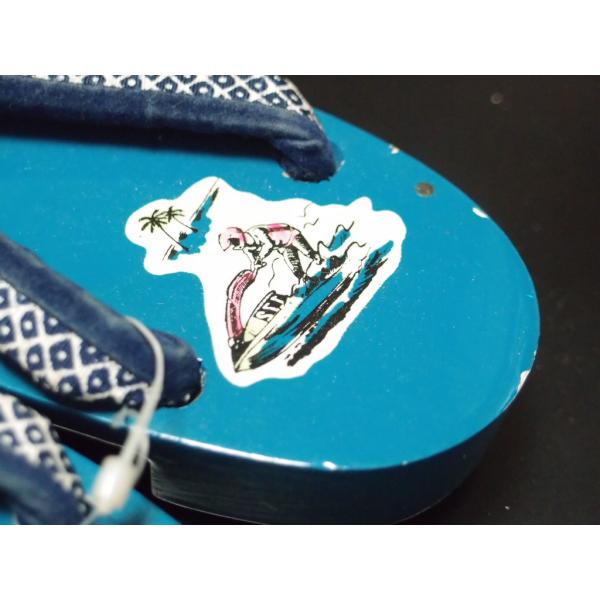 ブルーの塗り下駄水上バイク柄・16.5cm(15.5〜16.5cm用)