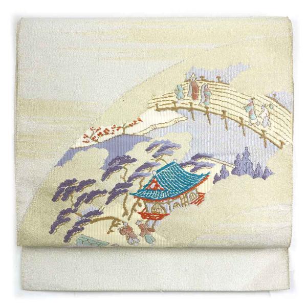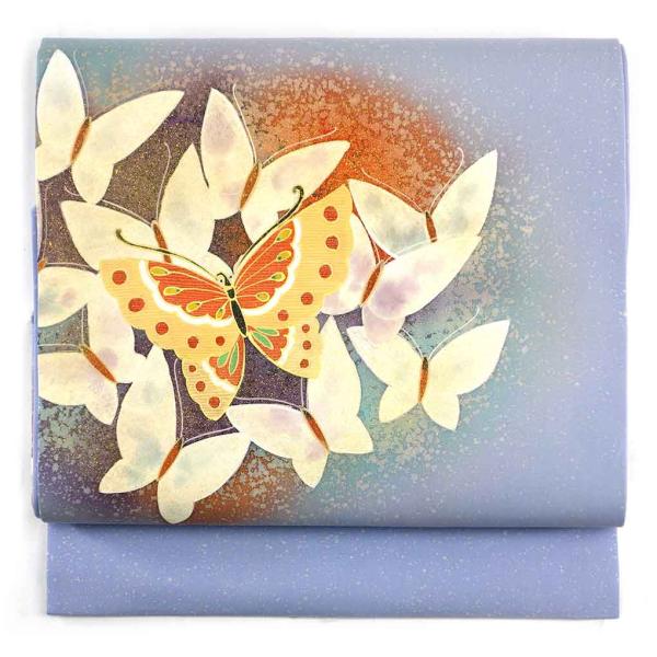 名古屋帯 幅30cm 長さ361cm レディース 蝶柄 秋冬春用 正絹(シルク)青色 やや難