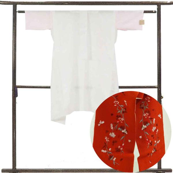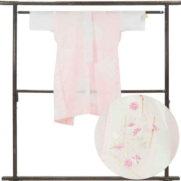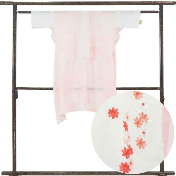 半襦袢 襦袢丈100cm レディース 胴抜袖無双 花柄 秋冬春用 ポリエステル 薄桃色 美品