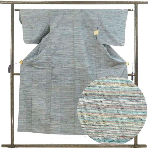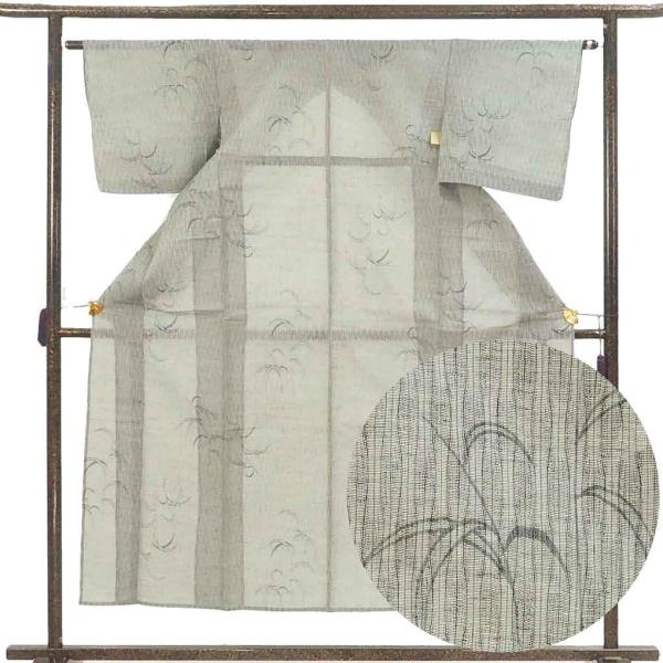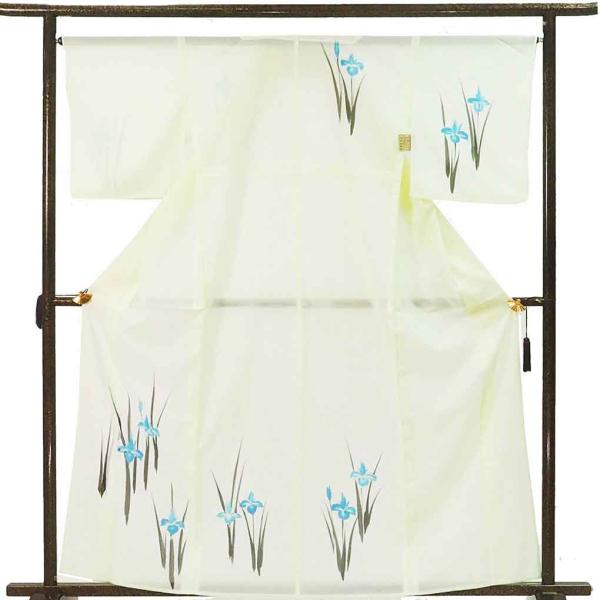 訪問着 身丈161cm 裄66cm レディース 菖蒲 裄長 裄M-Lサイズ 夏用 ポリエステル 薄緑色 やや難