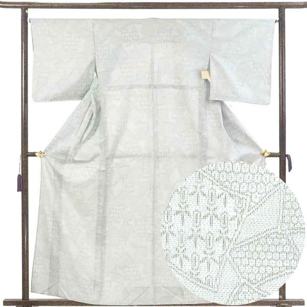 紬 身丈160cm 裄67cm レディース 単衣 絣模様 裄長 裄Lサイズ 初夏・初秋用 正絹(シルク)白色 やや難