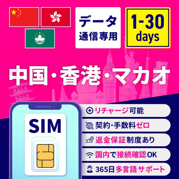 SIMカード 中国 香港 マカオ 中国SIM 香港SIM マカオSIM 1日間 3日間 5日間 7日間 10日間 15日間 30日間 安心サポート リチャージ可能