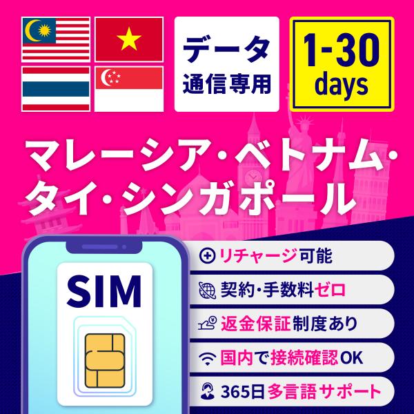 SIMカード マレーシア タイ ベトナム シンガポール 1日間 3日間 5日間 7日間 10日間 15日間 30日間 安心サポート リチャージ可能