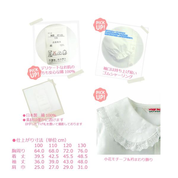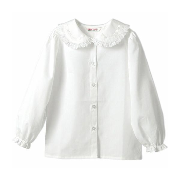 日本製白丸衿ブラウス 長袖 レース 刺繍 女の子 キッズ 子供服 ブロード 綿 100 110 120 130 0790-3