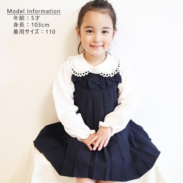 日本製キッズブラウス 白 長袖 丸衿 レース リボン ブロード 綿 子供服 女の子 100 110 120 130 0790-1