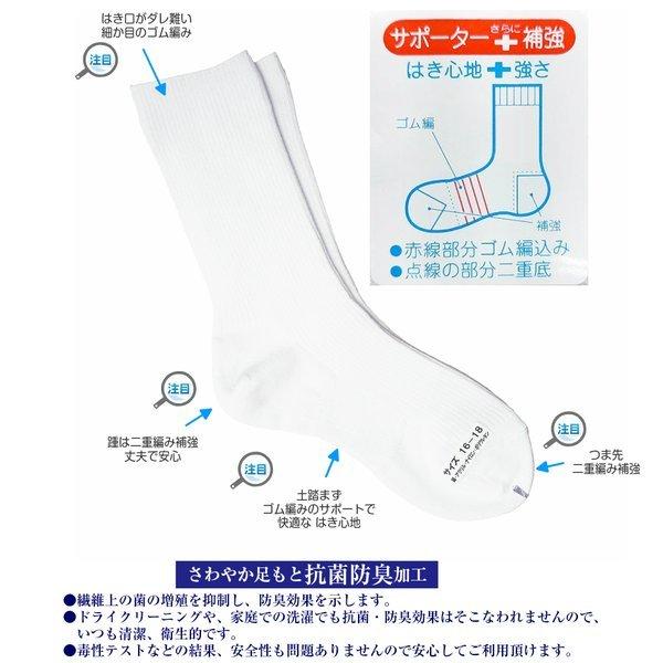日本製クルー丈ソックス 靴下 白 キッズ スクールソックス 抗菌防臭 リブ 綿混 108-2