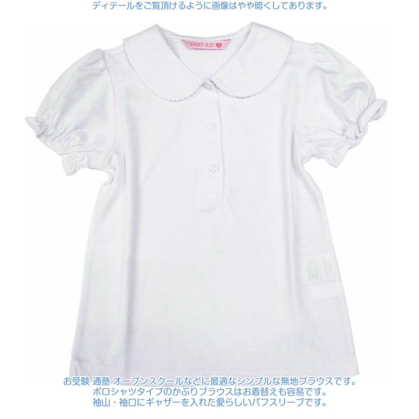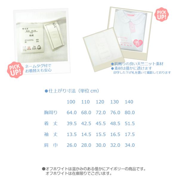 白ブラウス 半袖 白 オフホワイト 無地 天竺 ニット 女の子 子供服 100 110 120 130 140 1105