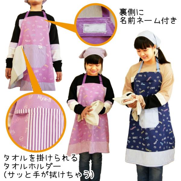 三角巾付きエプロン 三角巾 エプロン こども パープル ネイビー 1706 nyanderful