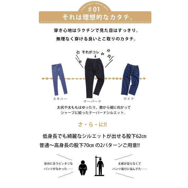 爆買 大きいサイズ レディース パンツ テーパード ストレッチ 低身長 S L LL 2L 3L 4L 10L 11L 黒 ネイビー 白 ストライプ ゴールドジャパン 【低身長さんサイ
