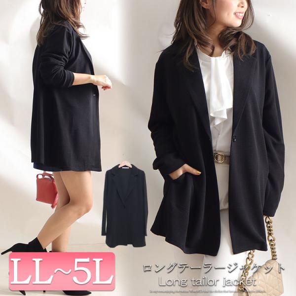 大きいサイズ レディース アウター ジャケット テーラードジャケット ポケット ロング 通勤 ビジネス フォーマル 冬コーデ 秋 春 LL 2L 3L 4L 5L ブラック 黒
