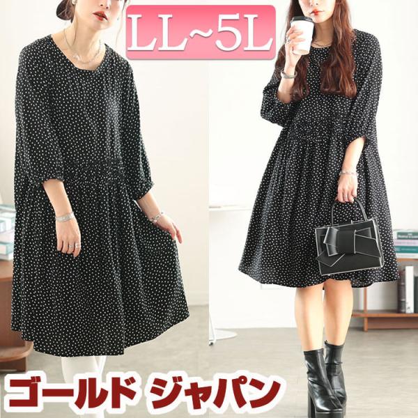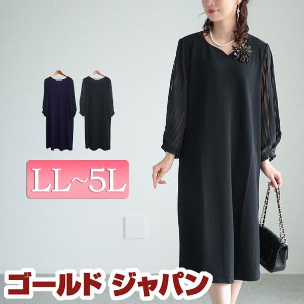 大きいサイズ レディース ワンピース ワンピ ロング 長袖 ミモレ ハートネック フォーマル 秋服 春服 LL 2L 3L 4L 5L ブラック 黒 紺