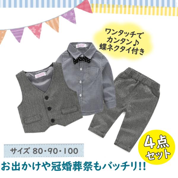 男の子 スーツ ベビー キッズ フォーマル 長袖 セットアップ ベスト 初節句 出産祝い 七五三 結婚式 子供服