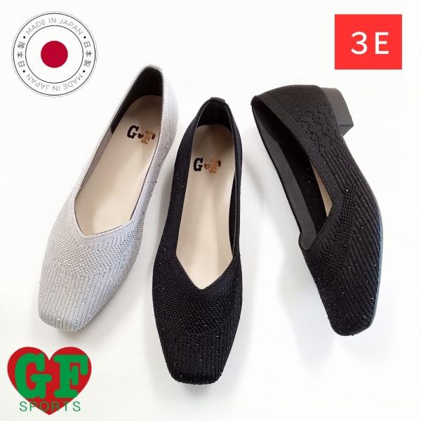 パンプス ニットパンプス キラキラ ラインストーン 幅広 3E ローヒール 婦人靴 レディースシューズ ゴールデンフット