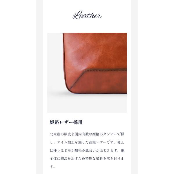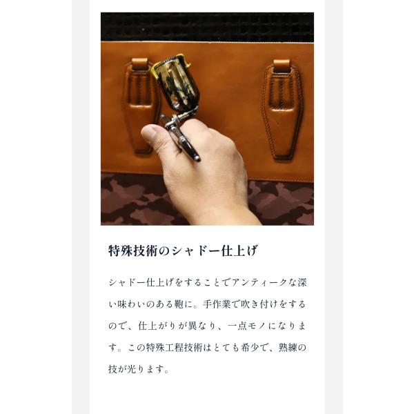 国内に数名のみ保有する鞄技術認定1級の職人が手がける鞄。北米産の良質な原皮を国内有数の姫路のタンナーで鞣し、オイル加工を施した味わいのあるレザー。ステッチ部分には手作業でシャドウ加工を施し陰影をつけ、濃淡を演出し他に2つとして同じモノがない特別な商品となっております。
