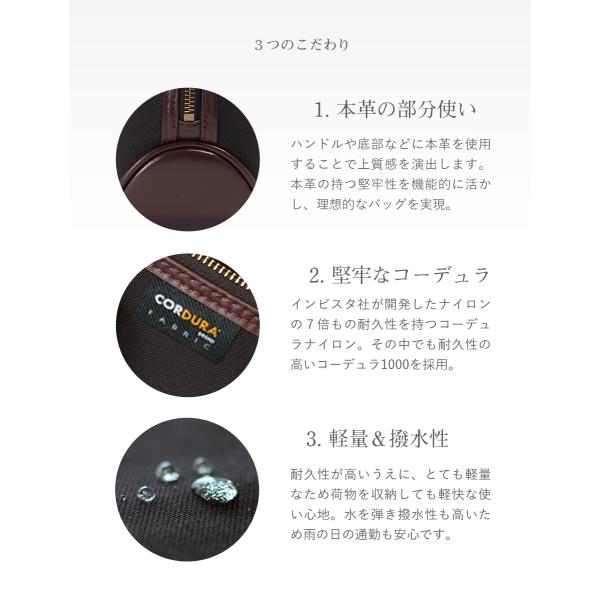 通勤にはマストな撥水性と軽さを実現するため、ボディには「コーデュラナイロン」。