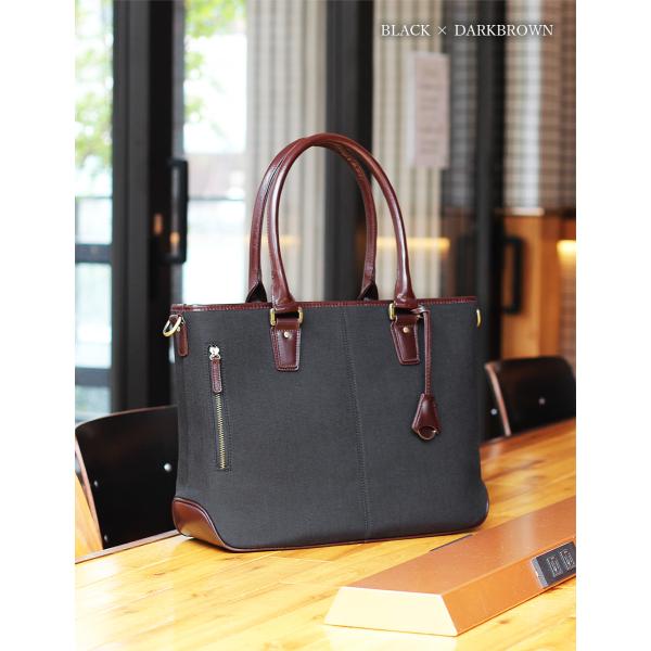 異なる二つの素材の特徴を見事に生かしたコンビネーションビジネストート。