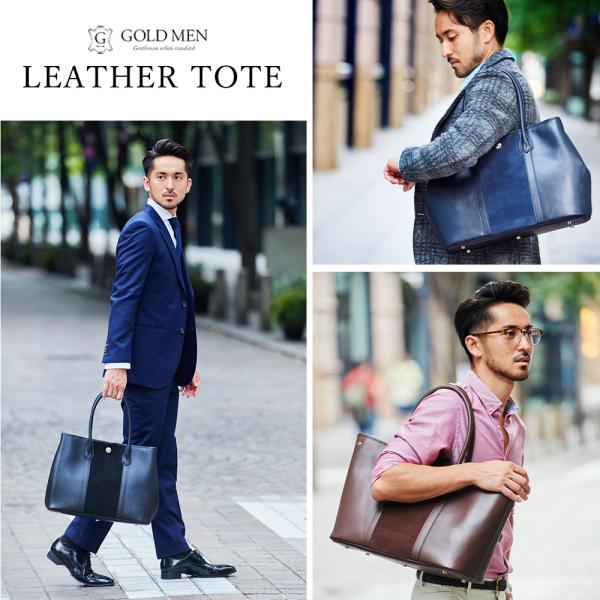 トートバッグ ビジネスバッグ 本革 A4 衝撃吸収 PCホルダー 自立 大容量 通勤 就活 40代 50代 GA204 ゴールドメン