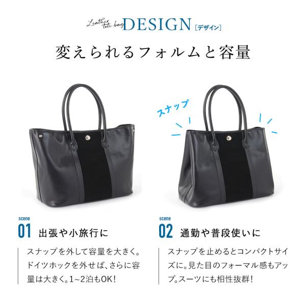 ビジネスにもプライベートにも、男性にも女性にもご使用いただける万能型トートバッグです。
