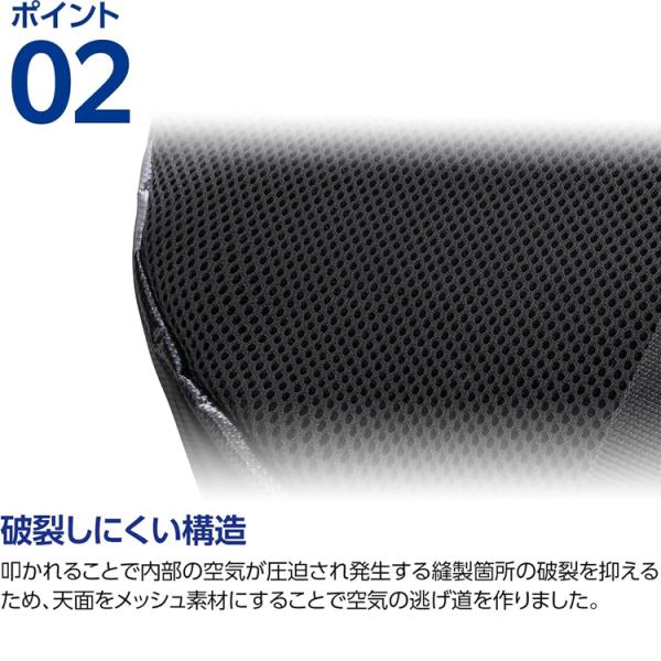 縫製破裂を防ぐ天面メッシュ構造